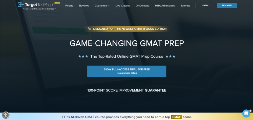 Target Test Prep (TTP) is an online GMAT preparation platform designed to offer a structured and thorough study plan for students. It’s especially known for its strong focus on quantitative skills, providing in-depth coverage of essential math concepts. This is a great option for those who feel their math skills need extra work.