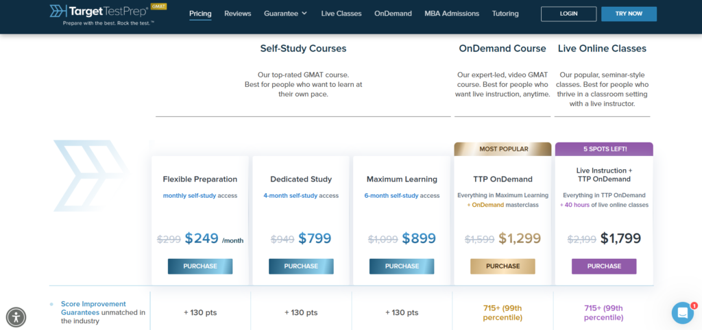 TTP offers competitive pricing plans, starting at $99 per month. This makes it an affordable option compared to many other GMAT prep courses. The platform also offers a free trial, so you can test it out before committing to a subscription.